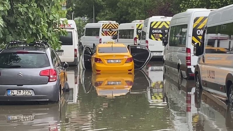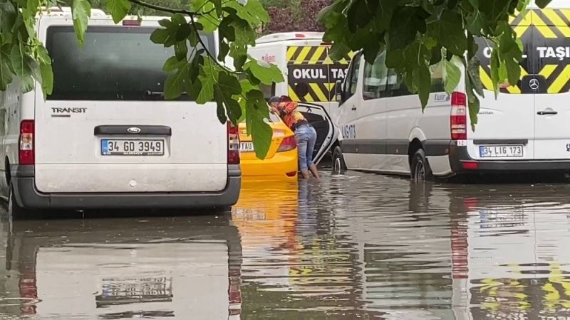 İstanbul’da öğle saatlerinde itibaren etkili olmaya başlayan şiddetli yağmur yolları göle çevirdi. Göle dönen Beşiktaş Balmumcu, Kara Hasan Sokakta seyir halinde olan araçlar zor anlar yaşadı. Bir ticari taksi de suda mahsur kaldı. Takside bulunan şoför ve faslı müşterisi panik yaşadı. Aracın içerisine su doldu. Olayın şokunu atlatan şoför ve müşteri aracı iterek sudan kurtardı. Araç kullanılmaz hale geldi