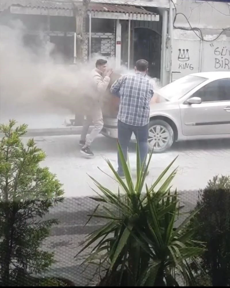 Bunun üzerine kaputu açan vatandaş, motordaki alevin bir anda parlaması sonucu koşarak kaçtı. Ardından diğer vatandaşlar yangın söndürme tüpüyle araçtaki yangına müdahale etti. İhbar üzerine olay yerine gelen itfaiye ekiplerinin de çalışmalarının ardından araçtaki yangın söndürüldü. Vatandaşın parlayan alevden kaçış anı ise cep telefonu kamerasına yansıdı.