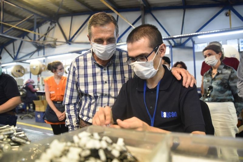 Diğer fabrikaların da projeye destek olmasını isteyen Başkan Ataç, “Baycan bu projeye başladığımızdan beri bize destek veren bir fabrika. Son olarak 3 gencimiz ile birlikte bugün 9 özel birey burada çalışıyor, montaj yapıyor. Yetkililerle konuştuğumda verimli ve disiplinli çalıştıklarını ifade ediyorlar ve fabrikada özel bir sevgi oluşturmuşlar. Bu çalışmayı OSB’de bulunan tüm fabrikalarımıza örnek olarak göstermek istiyorum. Bu çocuklara sahip çıkmamız çok önemli. Türkiye’de bugün 20.yaşın üzerindeki engellilerin gidecekleri hiçbir yer yok. Bu gençlerimizi evlerinde bulduğumuzda en az 7-8 aydır dışarı çıkamadıklarını, anne ve babalarıyla evde oturduklarının gördük. Ama bugün yüzlerce, binlerce adet montaj yapıyorlar çünkü hareket ediyorlar. Hareket etmeleri çocuklarımızın yeteneklerini artırıyor. Bu proje tüm Türkiye’ye örnek olmalıdır. Bu gençlerimiz, fırsat verildiğinde neler yapabileceklerini başarıyla kanıtlıyor. O açıdan diğer fabrika sahiplerinden de bu konuda duyarlı olmalarını özellikle rica edeceğim. Hem çocuklarımızı kurtarmış oluyoruz hem de sanayimize çok ciddi katkıları oluyor. Ben emeği geçen tüm arkadaşlarıma şükranlarımı iletiyorum” sözlerini kullandı.