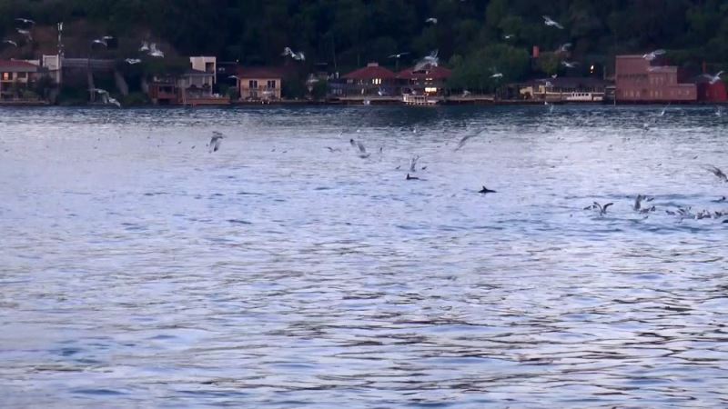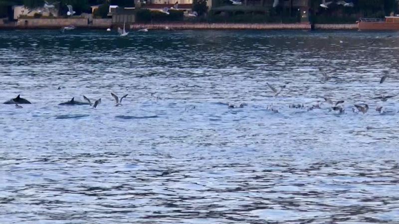 Korona virüs (Covid-19) salgını tedbirleri kapsamında deniz trafiğinin azalmasıyla İstanbul boğazı Yunus balıklarına kaldı. Boğazdan geçen gemilere eşlik eden Yunuslar, görsel şölen oluşturdu. Sevimli yunuslara martılar da eşlik etti. Boğazın keyfini çıkaran sevimli yunuslar bir süre sonra gözden kayboldu.