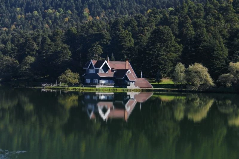 Sonbaharın gelmesi ile mavi, sarı ve yeşil tonlarının birbiriyle muhteşem uyumu Bolu Gölcük Tabiat Parkı’nde masalsı görüntüler oluşturdu. Havadan çekilen park ve çevresindeki renk cümbüşü kartpostallık manzaralar oluşturdu.