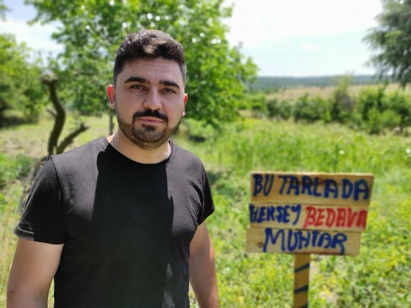 Bursa’da genç muhtar, tarlasındaki meyve ve sebzeleri yoldan geçen herkese ücretsiz dağıtıyor.
