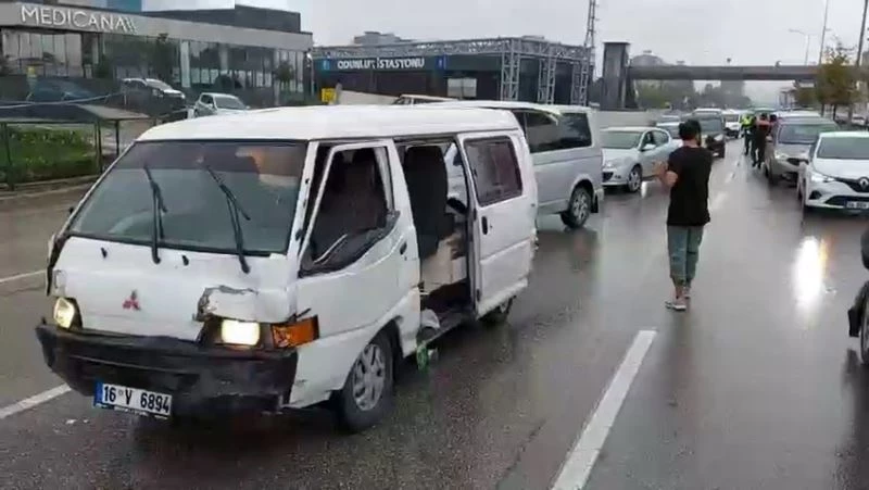 Bursa’da çalıntı minibüsle polis ekiplerinden kaçan zanlı, trafikte seyir hâlindeki 5 araca çarparak durabildi.