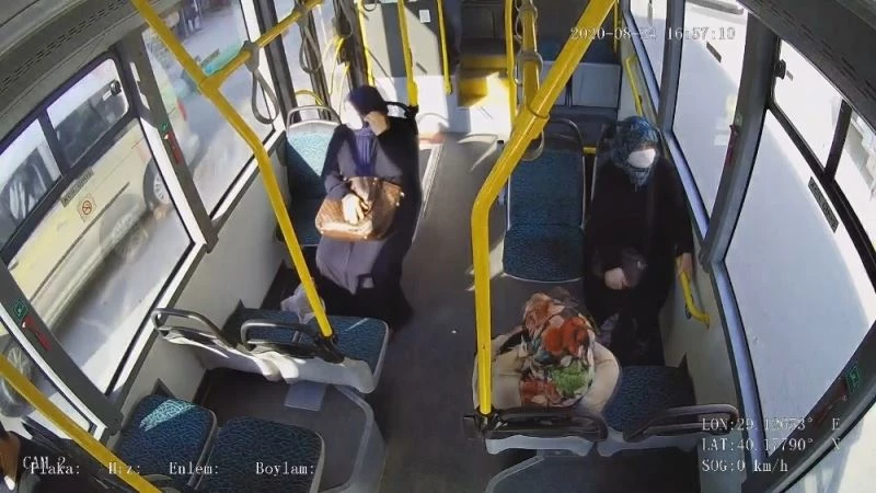 Otobüsün içerisinde bulunan güvenlik kameralarına yansıyan görüntülerde, otobüsün tenteye çarpmasının hemen ardından 3 metrelik demirin camı kırdığı ve otobüste oturan 3 kadının arasından geçtiği saniye saniye kaydedildi. Şans eseri kaza kimse yaralanmazken 3 kadın yolcunun yaşadığı korku böyle görüntülendi.