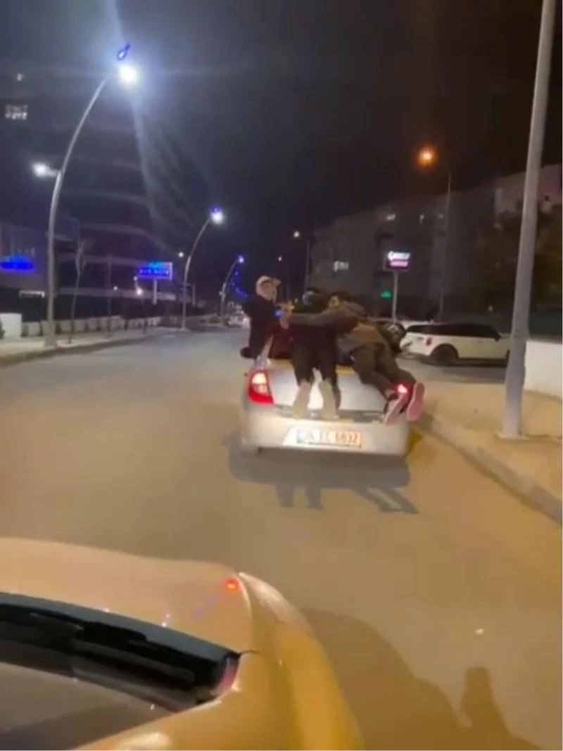 Mimaroba Mahallesi’nde dün akşam saatlerinde 5 genç seyir halindeki aracın üstüne çıkarak seyahat etti. Trafiği ve kendi canlarını hiçe sayan gençler bir vatandaş tarafından cep telefonu kamerasıyla kaydedildi. Görüntülerin ortaya çıkması üzerine harekete geçen Büyükçekmece İlçe Emniyet Müdürlüğü Devriye Ekipler Büro Amirliği ve trafik ekipleri aracı tespit etti. Araç sürücüsüne trafiği tehlikeye düşürdüğü için cezai işlem uygulandı.