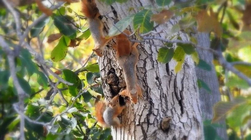 (Özel) Ceviz ağacındaki sincap ailesinin mutlu halleri görüntülendi