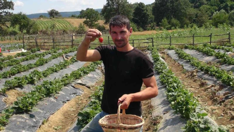 Bilecik merkeze bağlı Ulupınar köyünde 16 dönüm üzerinde 125 bin çilek fidesiyle üreticilik yapan Yalçın Nar bu yıl toptan ve pazarda çilek satmayarak, tarlasını vatandaşlara açtı. Bu yıl tarlasından vatandaşların gelerek çilek topladığı anlatan Nar, "Geçtiğimiz yıllarda ben çileği toplayarak toptan veya pazarlara giderek satıyordum. Bu yıl pandemiden dolayı vatandaşların evlerinde sıkıldıkları şehir hayatın koparak köylere akın ettiler. Buraları gezen vatandaşların çilekleri dalında toplama gibi bir istekleri oldu. Biz de onları kırmadık ve böylece bu işe girdik. Bunun yanında çileklerimiz günlük olarak dalında bitiyor, pazara gitme derdimiz kalmıyor. Bu yıl 16 ton yakın çilek toplandı tarladan" dedi.