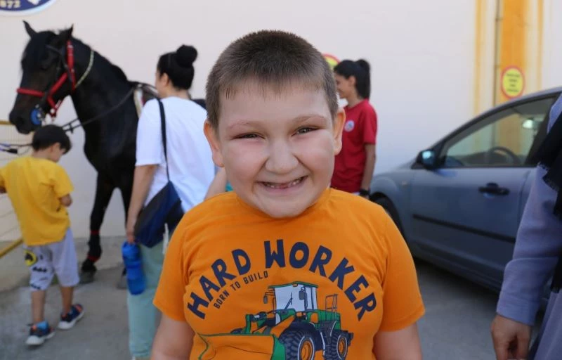 Turgutlu Belediyesi tarafından başlatılan ‘Mutlu Cuma’ projesi kapsamında özel eğitim alan çocuklar karşılarında gördükleri atla büyük mutluluk yaşadı. Eğitmenler eşliğinde ata binen çocukların mutlulukları gözlerine yansıdı.