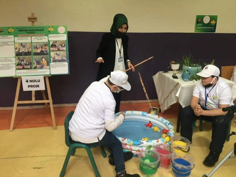 Düzce’de Özel öğrencilere eğitim ve rehabilitasyon veren Yeşil Düzce Özel Eğitim Uygulama Merkezi’nde, TÜBİTAK 4006 bilim fuarı heyecanı yaşandı. Merkezde eğitim gören özel öğrenciler, fuar için rehber öğretmenler eşliğinde yaptıkları tasarım çalışmalarını sergiledi.