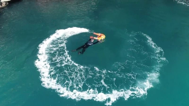 Antalya’da deniz polisi, botla ulaşamadıkları riskli alanlardaki kazazedeleri, her türlü zorlu hava koşullarında manevra yapabilen ve saatte 15 kilometre hızla gidebilen elektronik can kurtarma simidi ile kurtarıyor.