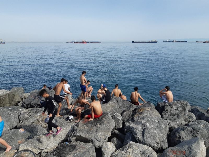 Korona virüs salgınına karşı alınan tedbirler kapsamında 18 yaş altı genç ve çocukların sokağa çıkması kısıtlanmıştı. Çarşamba ve Cuma günleri 14.00 ile 20.00 saatleri arasında sokağa çıkma izinleri olan çocuklardan bazıları yasağa uymayarak Zeytinburnu Sahili’ne koştu. Yasağı hiçe sayarak sokağa çıkan çocuklar, sıcak havayı fırsat bilerek sahilde denize girdi. Maske takmayan çocukların sosyal mesafe kurallarına uymadığı gözlendi.
