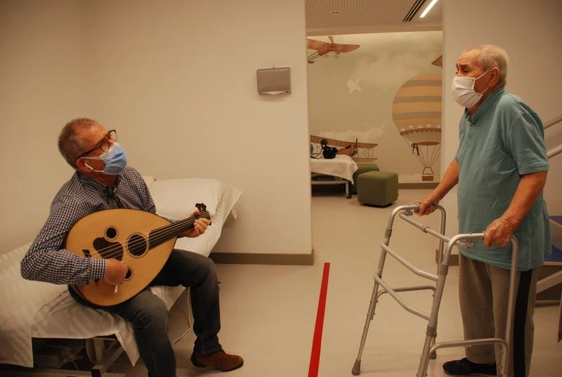 İzmir’de yaşayan 75 yaşındaki Bekir Hacıoğlu, omurgasındaki enfeksiyon ve tüberküloza bağlı apse nedeniyle yatağa bağımlı hale geldi. İki zorlu ameliyatın ardından fizik tedavi bölümüne yönlendirilen Hacıoğlu, tedavi sürecindeki pozitif enerjisinin de katkısı ile kısa sürede ayağa kalktı. Hacıoğlu, iyileşmesini hekim ve fizyoterapistlerle ud eşliğinde şarkı söyleyerek kutladı.