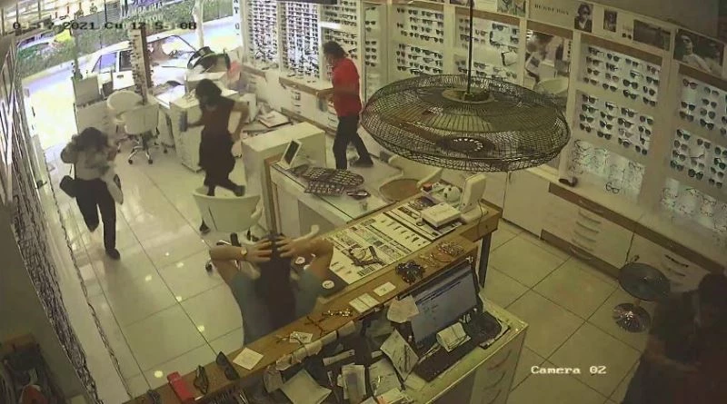 Otomobilin cadde üzerinde kontrolden çıkması, optik mağazasına girmesi, ve içerde yaşanan panik çevredeki iş yerleri ve otomobilin girdiği mağazanın güvenlik kameralarına saniye saniyesine yansıdı.