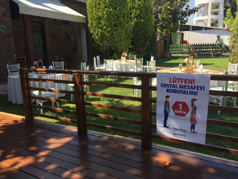 Girişte misafirleri ateş ölçerle karşılayacaklarını söyleyen Çarıklı, “Sosyal mesafemizi koruyarak misafirlerimizi içeri davet ediyoruz. 38 derece ve üstü ateşi çıktığı zaman kendilerinin en yakın sağlık kuruluşuna gitmesini tavsiye ediyoruz. Dans konusunda da İçişleri Bakanlığı’nın genelgesi kapsamında gelin ve damadımız haricinde misafirlerimiz dans edemeyecekler. Dinleti müziği olarak hizmet vereceğiz. Gelin ve damat ilk danslarını yapacaklar” diye konuştu.