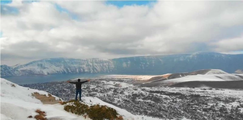 Avrupalı Seçkin Destinasyonlar Projesi (EDEN) kapsamında "Mükemmeliyet Ödülü" alan 2 bin 250 rakımlı Nemrut Krater Gölü, beyaz gelinliğini giydi. Yazı ayrı, kışı ise ayrı güzel olan Nemrut Krater Gölü’nün kış güzelliği drone ile havadan görüntülendi. Yazın her gün yerli ve yabancı binlerce turisti ağırlayan Nemrut’ta yağan karla birlikte seyrine doyumsuz manzaralar oluştu. Yağan karla birlikte tamamen beyaza bürünen Nemrut, yaz aylarında olduğu gibi kış aylarında da seyrine doyumsuz manzarayı izlemek isteyen yerli ve yabancı turistlerin akınına uğruyor.