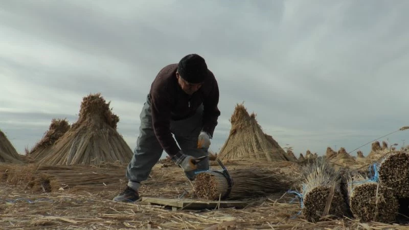 Kayseri Sultan Sazlığı Kuş Cenneti’nde yetişen kamışlar, eksi 10 derecede toplandıktan sonra yurt dışına ihraç ediliyor.