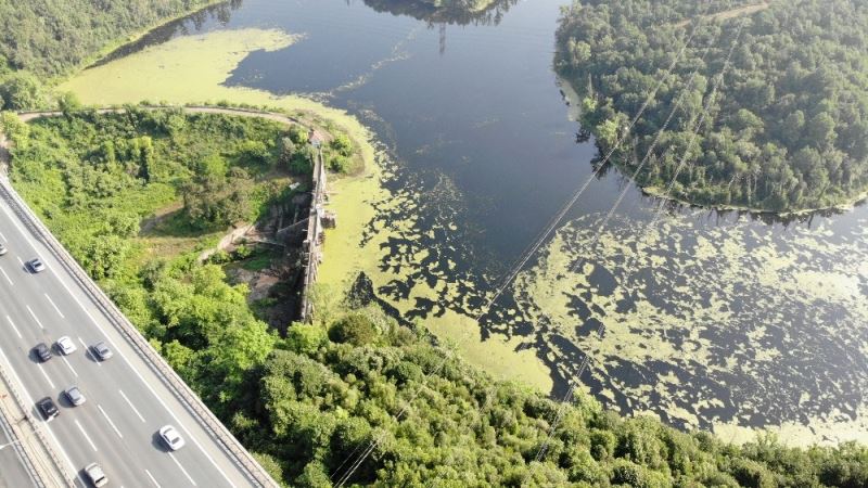 İstanbul’a su sağlayan önemli kaynaklardan biri olan Elmalı barajının üzerinde oluşan yeşil tabaka dikkat çekerken, bölge halkında tedirginliğe neden oldu. Yeşil renge bürünen Elmalı barajı havadan görüntülendi.