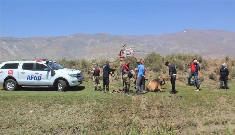 ERZİNCAN (İHA) – Erzincan’da bataklığa saplanan büyükbaş hayvan, AFAD, itfaiye ve jandarma ekiplerince kurtarıldı.