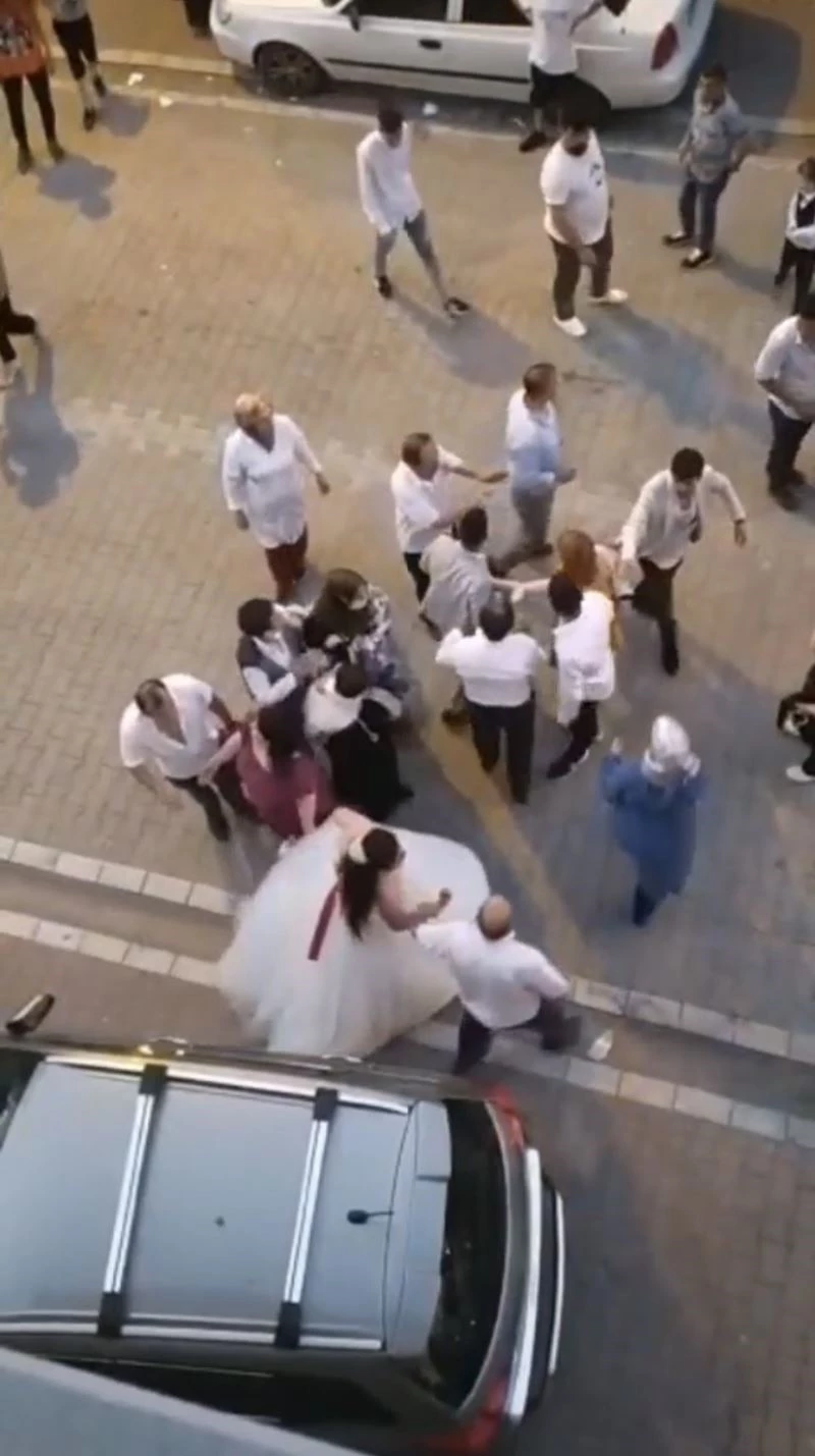 Olay, dün akşam saatlerinde Esenyurt Fatih Mahallesi’nde yaşandı. İddialara göre düğünde takı nedeniyle gelin ve damat tarafı arasında tartışma çıktı. Duruma sinirlenen gelinin babası, kızını da alarak düğünü terk etti. Kapı önünde büyüyen tartışma dünürler arasında kavgaya dönüştü. Yaşanan kavgada sinir krizi geçiren gelin, arabayı yumrukladı. Yarım kalan düğünün ardından babasının arabasına binen gelin, olay yerinden ayrıldı. Yaşananlar çevredeki vatandaşların cep telefonu kamerasına yansıdı.