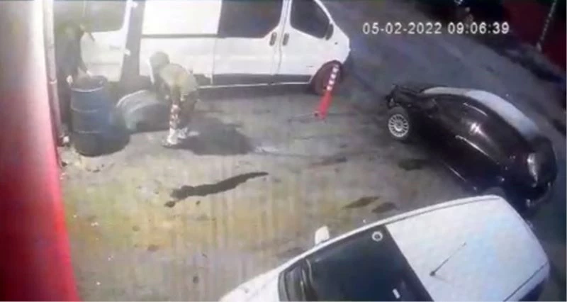 Esenyurt’ta bir sanayi sitesine gelen 2’si kadın 3 hırsız, dükkanların önündeki varillerde bulunan hurda parçalarını çalarken güvenlik kamerasına yakalandı. Görüntülerde sakar kadın hırsızın bir zincire takılıp düşme tehlikesi geçirmesi de görüldü.