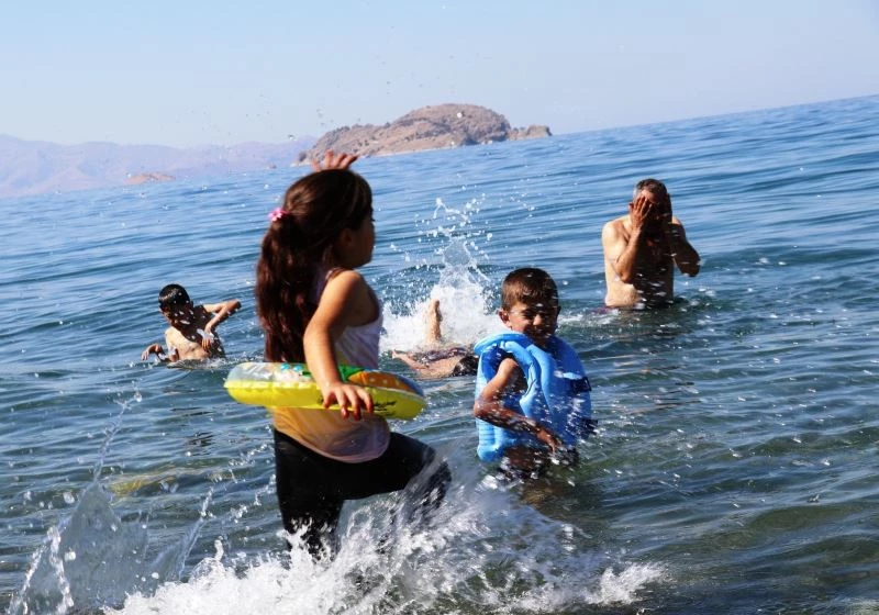 ’Van Denizi’ olarak nitelendirilen ve Türkiye’nin en büyük gölü olan Van Gölü kıyı kesimi, eylül ayında da yüzme keyfi yaşamak isteyenlerin adresi haline geldi. Van Gölü’nün kıyı kesimlerinde vatandaşlar çocuklarıyla birlikte yüzmenin tadını doyasıya çıkarıyor. Eylül ayının ortalarında Van Gölü’ne giren vatandaşlar bir yandan serinlerken, bir yandan da piknik yapmanın keyfini yaşadı.
