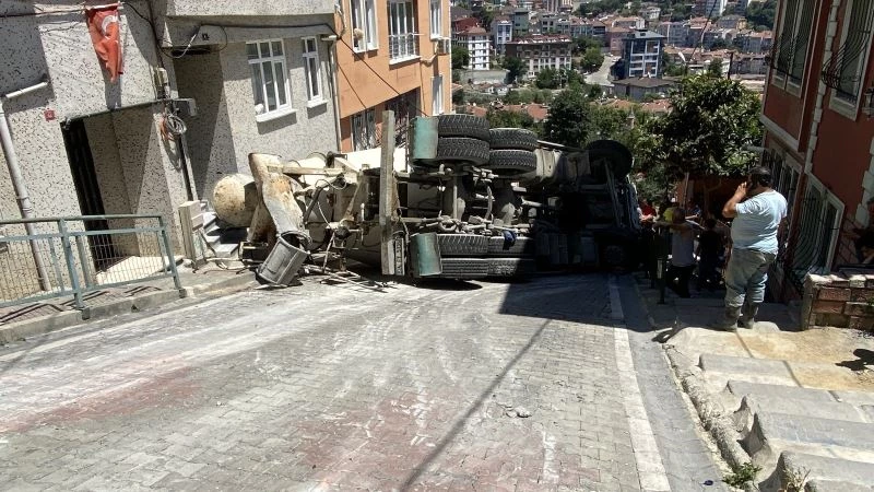 (Özel) Eyüpsultan’da manevra yapan beton mikseri devrildi