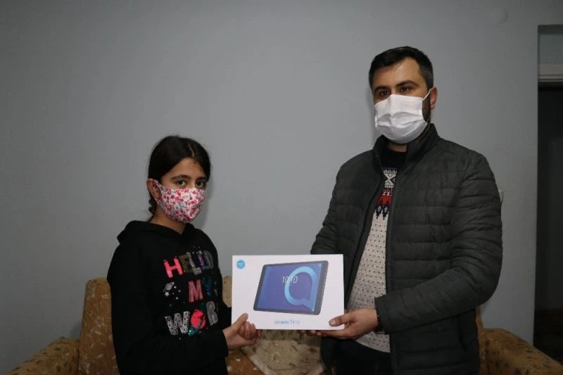 4. sınıf öğrencisi Deniz Koçak da, “Tablet ya da bilgisayarım olmadığı için canlı derse gidemiyordum. Çok mutluyum. Hayırseverlere çok teşekkür ediyorum” diye konuştu.