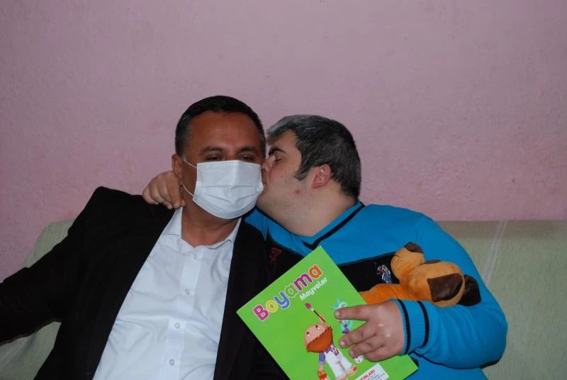 Başkan Akcan, özel çocuklarla sohbet edip, boyama kitabını onlarla birlikte boyadı. Akcan, yollarda karşılaştığı çocuklara da bayram hediyesi verdi.
