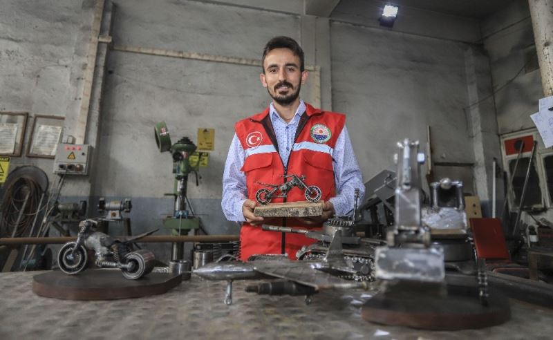 Başkent’te, Kaynakhane Atölye Şefi olarak çalışan Aydın Doğan, atık malzemeleri hurdaya göndermek yerine iş makinesiası, tank, uçak ve motor maketleri yaptı.