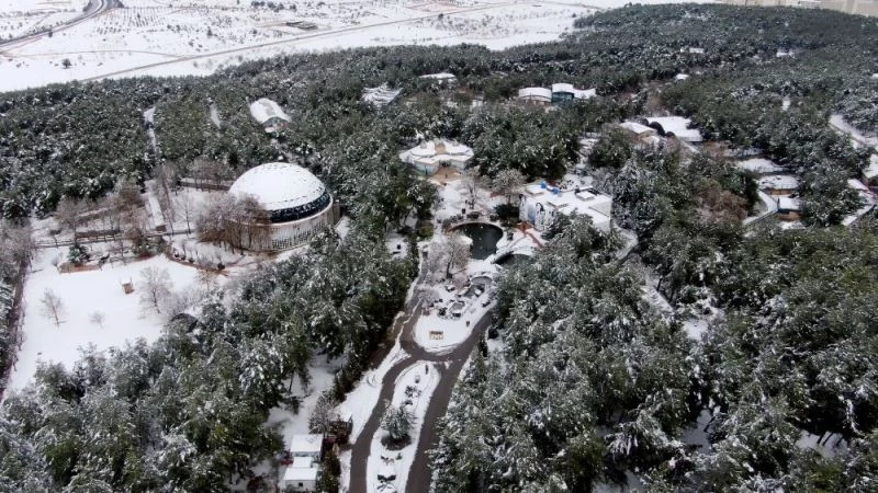Türkiye’nin ve dünyanın en büyük hayvanat bahçeleri arasında olan Gaziantep Büyükşehir Belediyesi Hayvanat Bahçesi’nde bulunan çöl hayvanları ile vahşi doğaya alışkın olan yırtıcı hayvanlar, yoğun kar yağışının keyfini sürdü. Havadan da görüntülenen hayvanat bahçesi, beyaz, sarı ve yeşile uzanan renk cümbüşü ile kartpostallık görüntülere sahne oldu