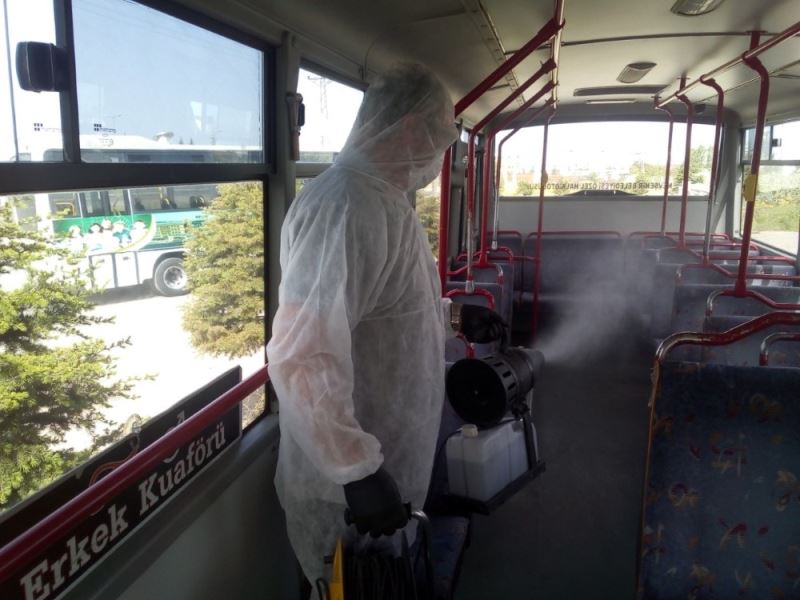 Yeni tip korona virüs (Kovid-19) tedbirleri kapsamında temizlik ve hijyen çalışmalarını büyük bir titizlikle sürdüren Nevşehir Belediyesi, özel halk otobüslerini periyodik olarak Sağlık Bakanlığı Halk Sağlığı Genel Müdürlüğü tarafından ruhsatlı virüsidal etkili biyosidal ürünlerle dezenfekte ediyor.