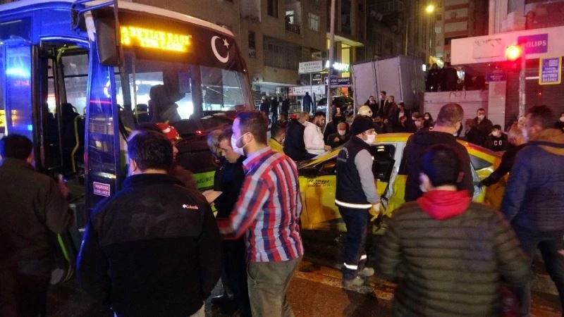 Özel halk otobüsü ile ticari taksi çarpıştı: 3 yaralı