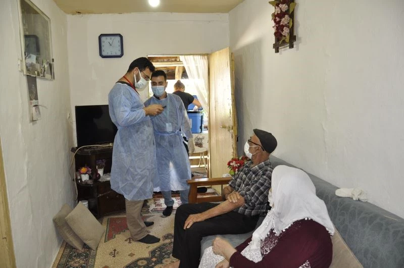 Hastaneye gitmekte güçlük çeken vatandaş evlerinde aşılanıyor