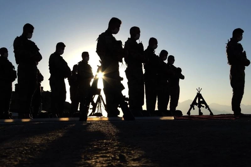 İlçedeki hakim noktalardan biri olan Balkayalar Dağı’nın zirvesinde kurulan üs bölgesinde görev yapan hudut kartalları, bayram namazını serilen branda ve halının üzerinde komutanlarıyla birlikte eda etti. Namazdan sonra tek tek bayramlaşan Mehmetçik, tekbirler eşliğinde kurban kesti. Mehmetçiklere hazırlanan bayram şekerleri ve kolonya ikram edilirken, elleri tetikte mevzide sınırı gözetleyen askerlerin de bayramı kutlandı.