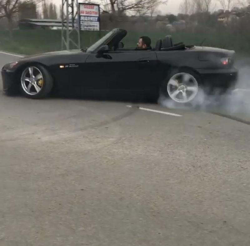 Hem kendi hem de diğer sürücülerin canını tehlikeye atan magandalar, şov uğruna yapmadığını bırakmadı. Ortalığı dumana boğan magandalar, kendi etrafında dönerek kuralları hiçe saydı. Magandalar o anları kaydettirip, bir de sosyal medyada yayınladı.