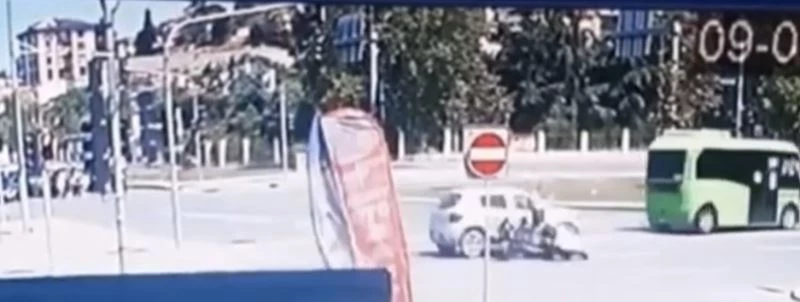 (Özel) İstanbul’da feci kaza kamerada: Otomobilin çarptığı motosikletli yere savruldu