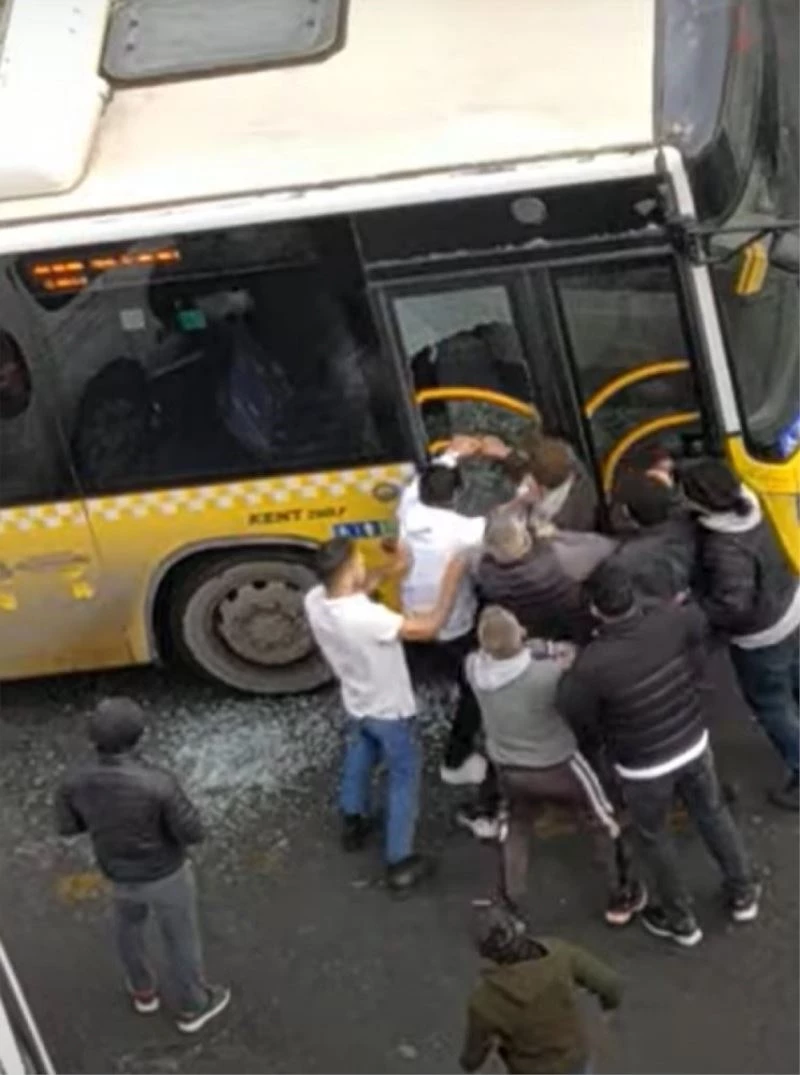 (Özel) İstanbul’da otobüsün camını kırıp şoförü ve oğlunu darp ettiler