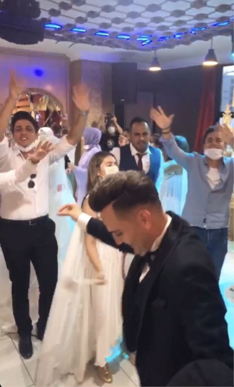 Konvoyun ardından düğün salona ulaşan gruptakiler, salgına rağmen kurala uymayarak halay çekti. Göbek atarak eğlenen, maskeleri çene altında ve kollarında tutan salondakiler salgına rağmen ölüme meydan okuyarak doyasıya eğlendi. Magandalar ve katılımcılar o anları bir de sosyal medya hesaplarından paylaştı.
