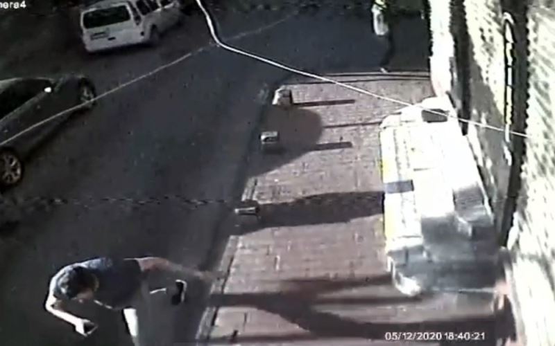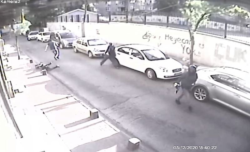 Görüntülerde, kasklı iki şahıs ara sokaktan yürüyerek sokağa doğru geliyor. Şahıslardan biri yolun karşısında geçip beklerken, diğeri ise kaldırımdaki iş yerinin önünde oturan gencin karşısına geçiyor. Gence birkaç şey söyleyen şahıs ardından tabancasını gence doğrultuyor. Tabancayı gören genç kaçarken, saldırgan arkasından ateş açıyor. Bacağından yaralanan genç yere düşerken, sürünerek kaçmaya çalışıyor. Saldırgan ise birkaç el daha ateş ederek ara sokaktan kaçıyor. Vatandaşlar ise yerdeki genci yoldan çekmeye çalışıyor. Sokakta yürüyen vatandaşlar ise panikle etrafa kaçışıyor.