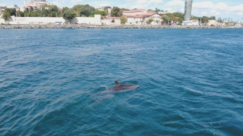 Masmavi denizde adeta dans edercesine yüzen yunuslar, İstanbul’da daha sık görülmeye başlandı. Tarihi yarımada manzarası ile birlikte yunusların suyun üzerinde yüzdüğü o anlar kartpostallık görüntüler oluşturdu.