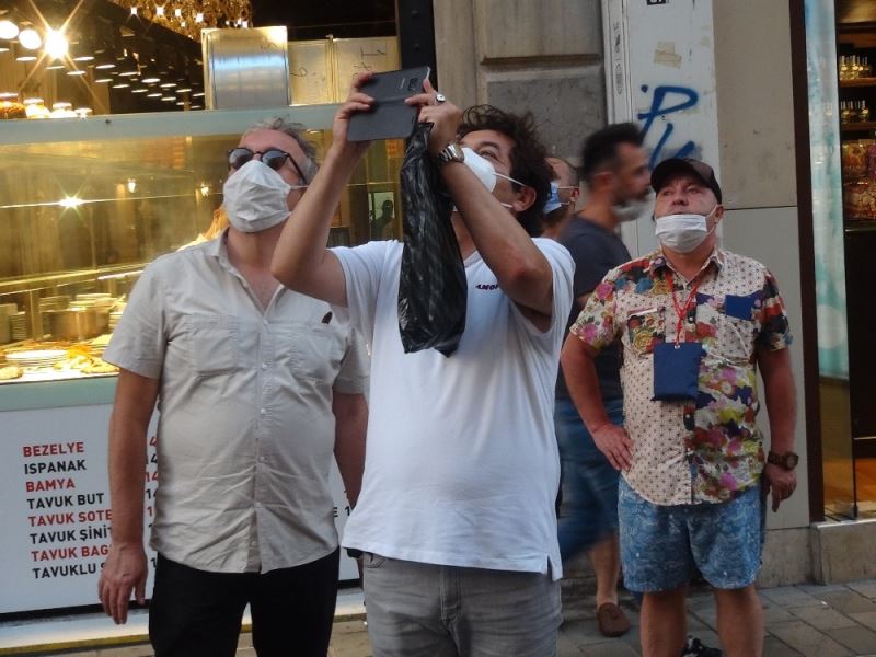 Taksim İstiklal Caddesi’nde kullanılmayan bir binanın penceresinin rüzgar nedeniyle düşme tehlikesi olduğunu fark eden vatandaşlar itfaiyeyi aradı. Olay yerine gelen itfaiye ekipleri, bina ve çevresini şeritlerle kapatarak merdiven aracıyla bina üzerinde çalışma başlattı. Yaklaşık 1 saat süren çalışma sırasında caddeden geçen vatandaşlar ve yabancı turistler bina önünde durarak yan yana dakikalarca yapılan çalışmayı izledi. İtfaiye ekipleri sallanan pencereyi yerinden söktükten sonra olay yerinden ayrılırken, sosyal mesafeyi hiçe sayan vatandaşlar zabıta ekiplerinin uyarıları sonrası dağıldı.