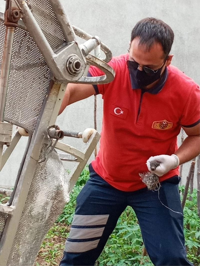 Kısa süre sonra olay yerine gelen ekipler, itfaiye merdivenini açarak çatının bulunduğu yere yükseldi. Kuşu dikkatle sıkıştığı yerden kurtaran itfaiye eri Eren Arslanyılmaz, minik hayvanın kalbinin durduğunu fark edince hemen merdivenle aşağıya indi.