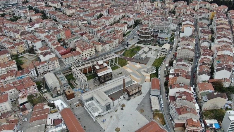 Öte yandan tarihi Hasanpaşa Gazhanesinin son hali havadan görüntülendi.