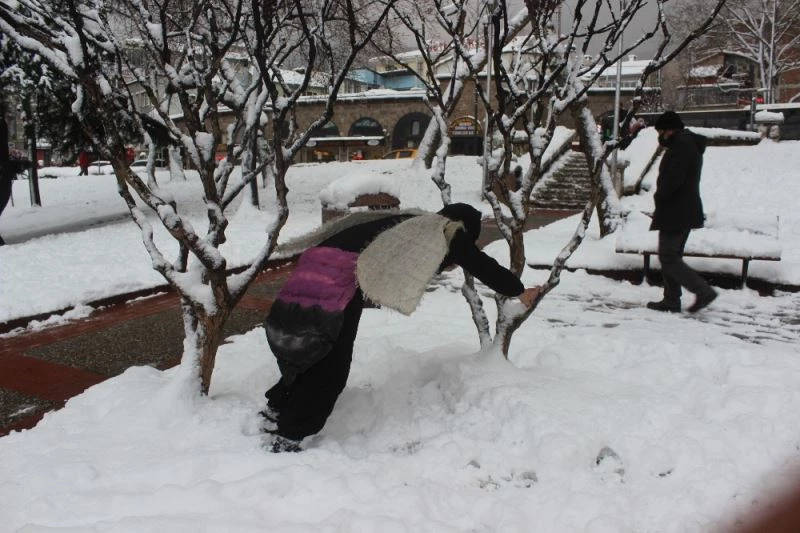Bursa’da gündeme ilişkin konularda farkındalık oluşturmak için kimi zaman geyik, kimi zaman kartal, bazen de virüs kılığına giren tiyatrocu Bahtiyar Keskin, karda aç kalan hayvanlara dikkat çekmek için arı kostümü giyip yarım metre karda yuvarlandı.