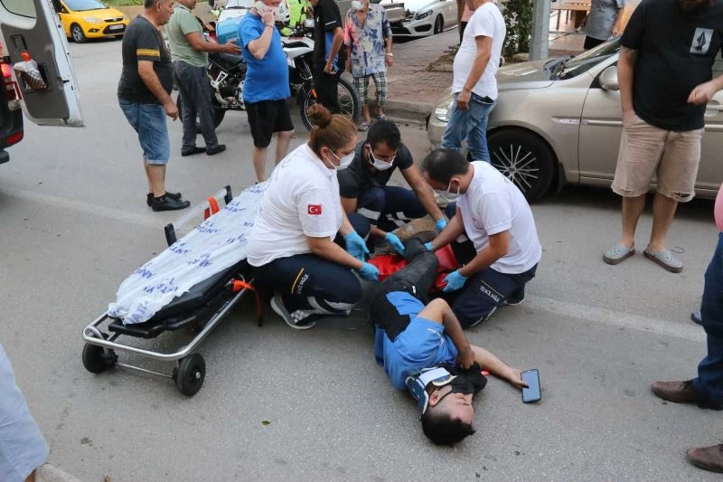 Antalya’da moto-kurye karşısında çıkan ticari taksiye çarpmamak için yere düştü. Düşme sonucu yerde sürüklenen kurye, ticari taksiye vurarak durdu. Kazada kurye ölümden dönerken o anlar güvenlik kamerası tarafından kaydedildi. Genç ise yerde acı içerisinde yatarken elinden telefonunu bir an olsun bırakmadı.