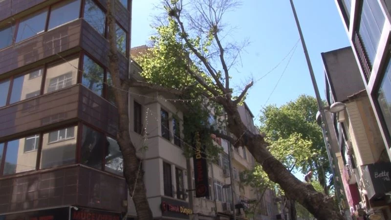 (Özel) Kartal’da asırlık ağaç iş yerinin çatısına devrildi