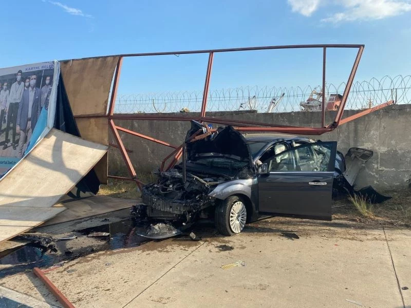 Kartal’da aşırı hız nedeniyle takla atan araç sürücüsü araçtan burnu dahi kanamadan kurtuldu. Reklam panolarına çarparak duran araç ise kullanılamaz hale geldi.