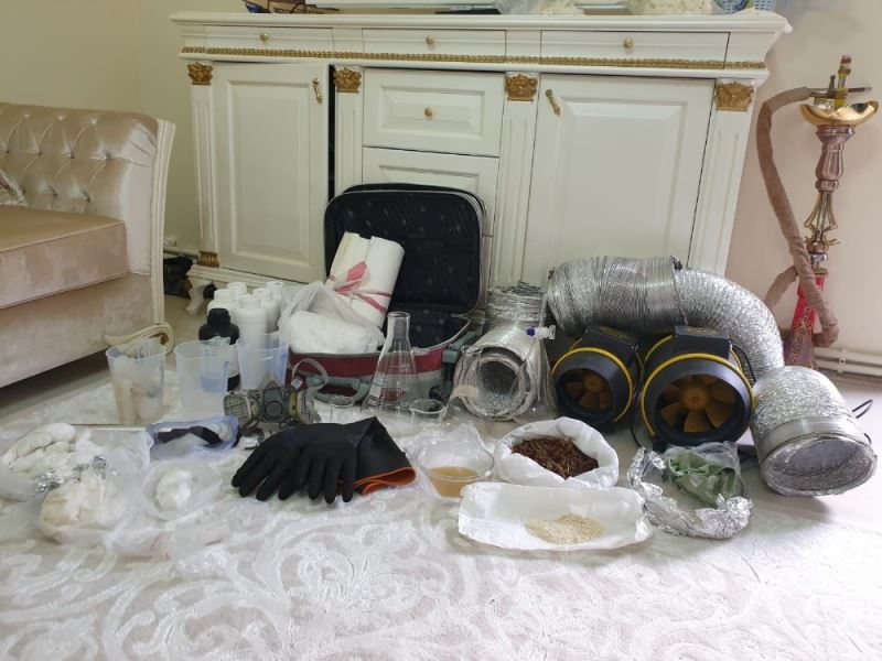 Öte yandan operasyon kapsamında belirlenen bir adreste arama yapan polis, balkonda poşetin içerisine gizlenmiş çok sayıda efedrin maddesi ele geçirdi. Aramalara devam eden narkotik polisi, kombi dolabını açarak inceleme yapmaya başladı. Dolap kapısını açmasıyla birlikte şaşıran polis, pamuğa emdirilmiş ve tepsinin içerisine hazırlanmış uyuşturucu maddeler ele geçirdi. Aramada bulunan maddeler ise cep telefonu kamerasına yansıdı.
