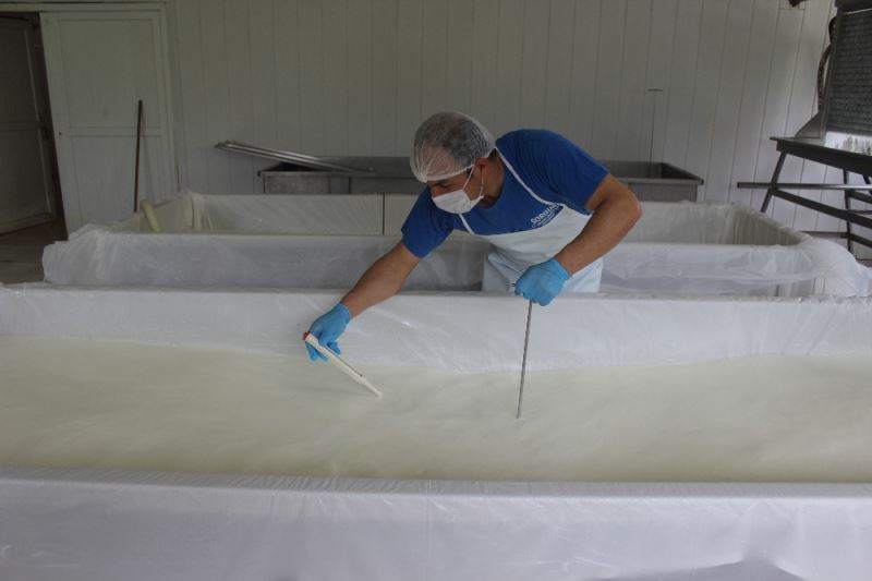 Peynir ustası Şenol Demir, "Burada doğal sütlerden peynir üretimi yapıyoruz. 7 kilo sütten bir kilo peynir çıkıyor. Hazırladığımız peynirleri bir yıl olgunlaşmaya bırakıyoruz. Burada günlük 420 kilo peynir yapıyoruz" dedi.
