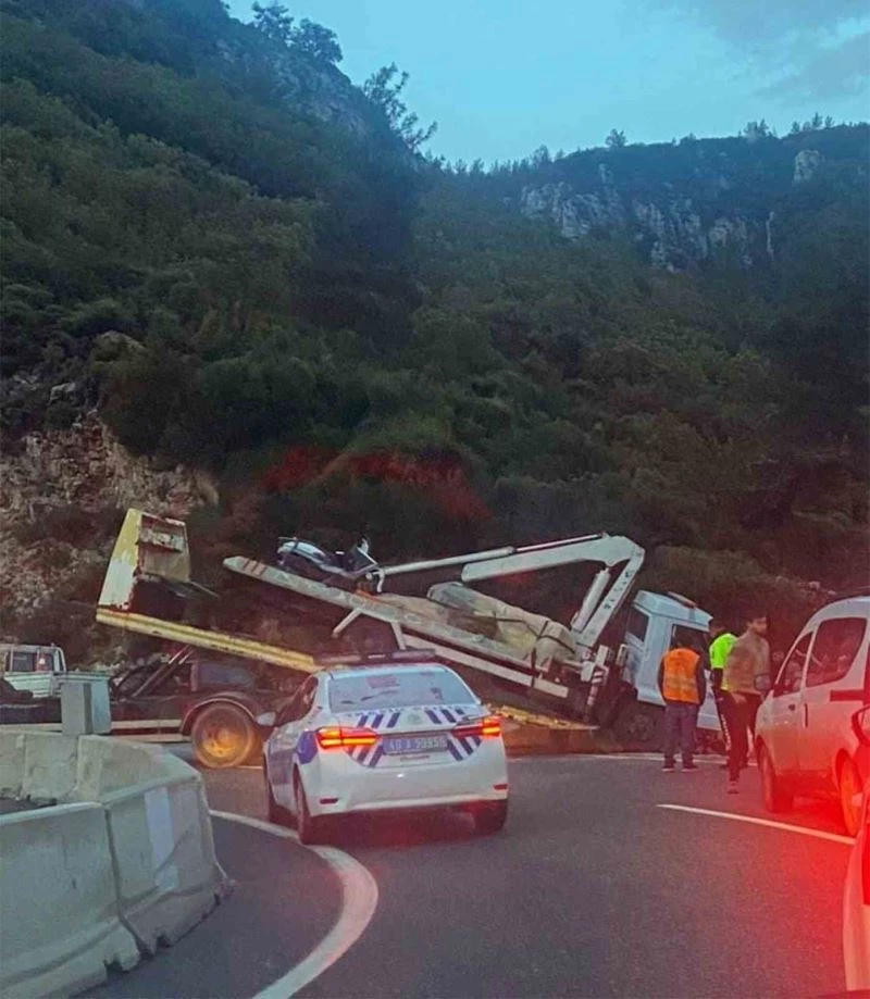 Ula-Marmaris karayolu Sakar rampasında özel kurtarıcı sürücüsü direksiyon hakimiyetini kaybedince orta refüje çarptıktan sonra karşı şeride geçti.